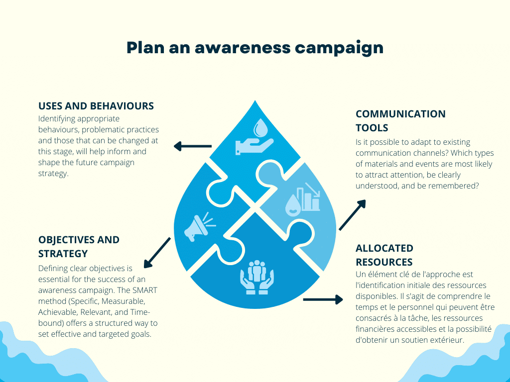 Goals should be realistic and achievable. Indicators, such as water consumption for example, can be defined at this stage and monitored throughout the campaign to assess its effects.